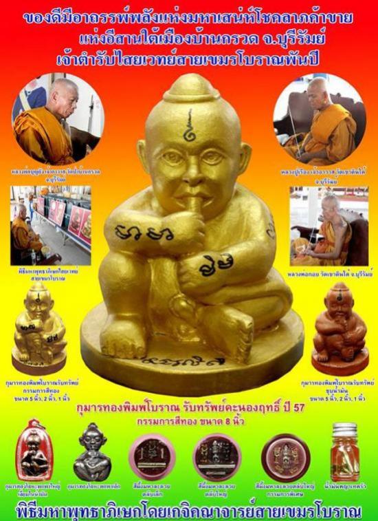 - กุมารทองพิมพ์โบราณ หลวงพ่อกอย ขนาด 5 นิ้ว ชุบน้ำมันมหาเสน่ห์โภคทรัพย์ วัดเขาดินใต้ ปี 2557 บูชาตนละ 1,999 บาท